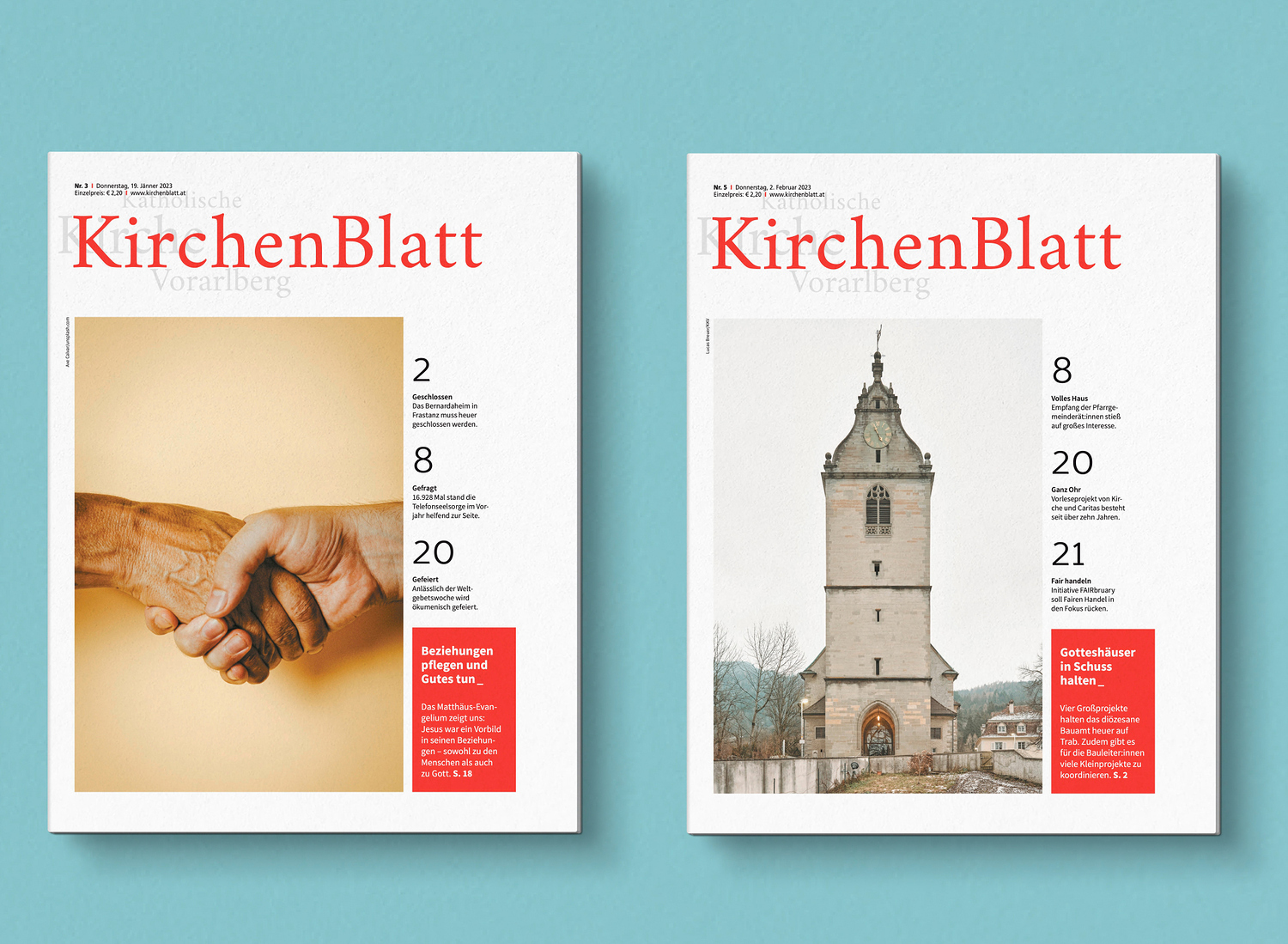 Die Welt des Glaubens und der Religion ist spannender, als Sie vielleicht annehmen. Vor allem anderen aber ist es das Evangelium, die Frohe Botschaft, die den Weg zu Ihnen findet. Eine Chance für Herz, Verstand und Sinn. Doch das ist noch nicht alles, was das Vorarlberger KichenBlatt zu bieten hat.