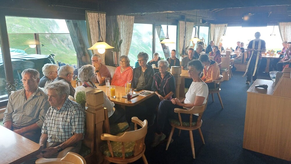 Oben auf dem Berg, waren wir herzlich willkommen und konnten die Dankmesse anlässlich 50 Jahre Gipfelkreuz auf der Wildgrubenspitze mit Pfarrer Josef Walter in der Gaststube des Bergrestaurants Seekopffeierlich begehen.