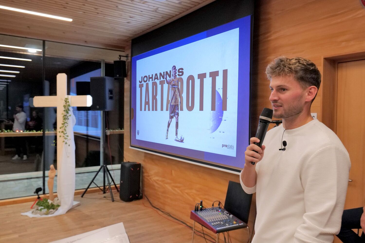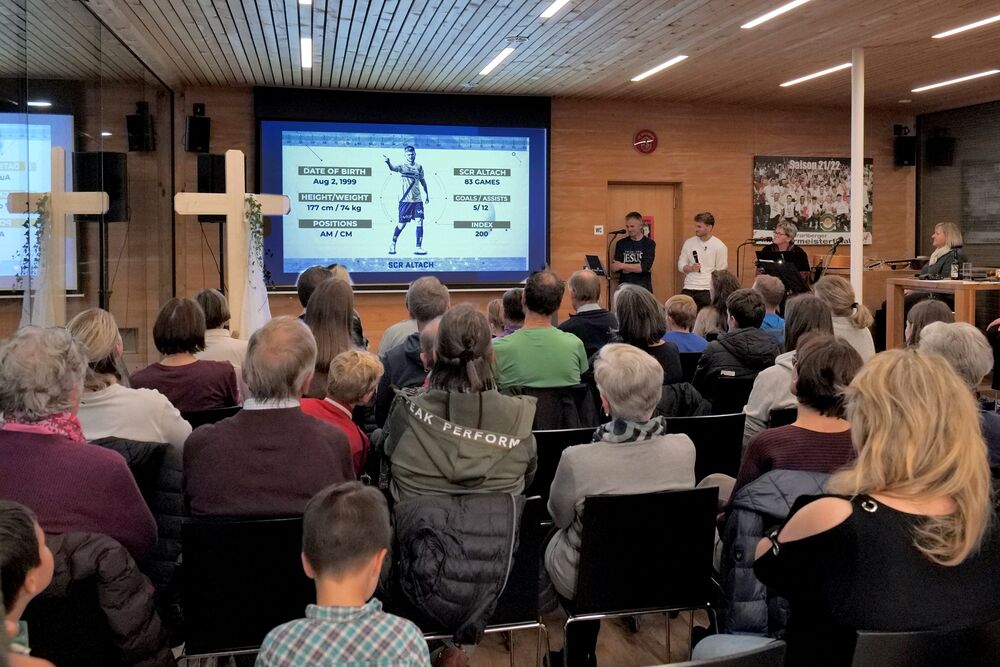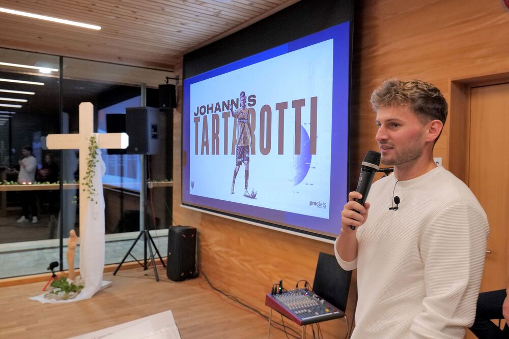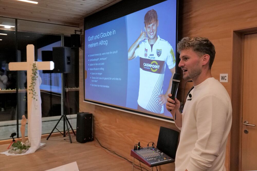Ein Höhepunkt des Abends war der Impulsvortrag des jungen Profifußballers Johannes Tartarotti, der offen und authentisch Einblick in sein persönliches Glaubensleben gab. Mit beeindruckender Ehrlichkeit sprach er darüber, wie sein Glaube ihm in Höhen und Tiefen des Profisports Halt gibt. Im anschließenden Gespräch beantwortete er zahlreiche Fragen des Publikums und ermutigte die Anwesenden, den Glauben mutig in den Alltag einzubringen – auch auf dem „Spielfeld des Lebens“.