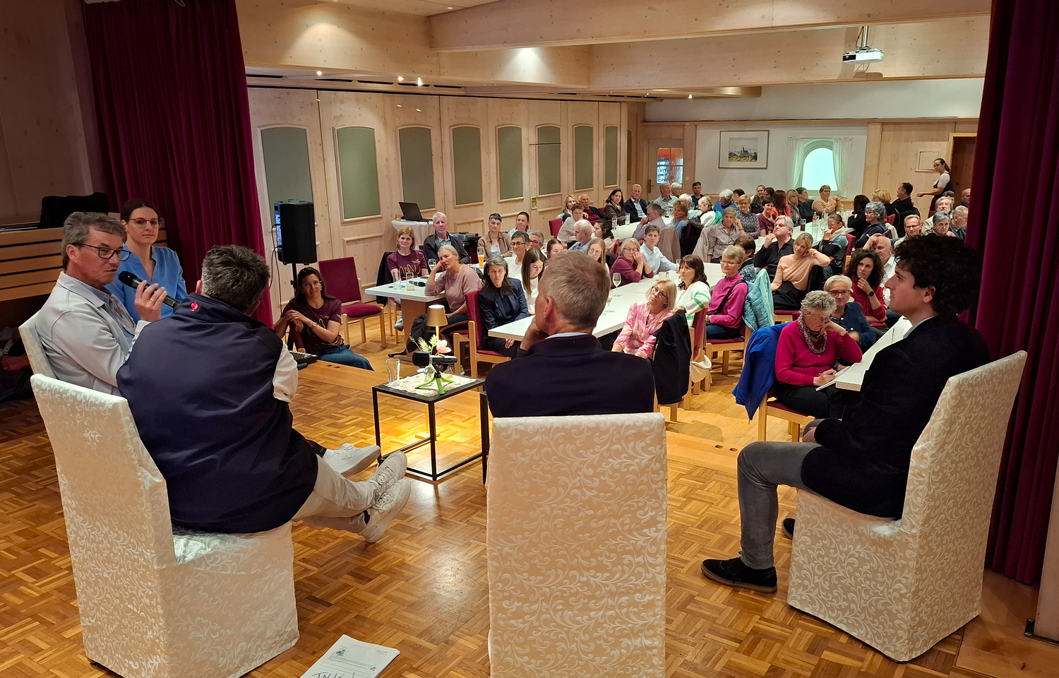 Elisabeth Kappaurer, Skirennfahrerin, wurde durch ihre langen Verletzungspausen besonders geprägt. Das Erreichen kleiner Zwischenziele entfachte in ihr immer wieder neue Hoffnung. Seinen entscheidenden Sieg feierte Arno Hirschbühl, Paralympicteilnehmer, mit dem Akzeptieren seiner körperlichen Einschränkung. Dieser Schritt war notwendig, um Stufe für Stufe im Leben erfolgreich zu werden. Hubert Strolz, Olympiasieger, gab persönliche Einblicke in das spannende Skifahrerleben von ihm und seinem Sohn Johannes. Dass nicht nur im Sport der Zweifel und das Ringen mit sich selbst seinen Platz hat, sondern auch im Glauben, betonte der Priester Gabriel Steiner. Während ein Sturz beim Skifahren oft im Fangnetz endet, weiß sich der Gläubige mit seinen Sorgen und Nöten von den Händen Gottes aufgefangen.