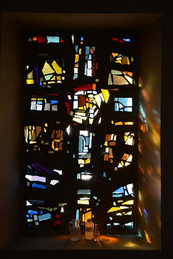 Kirche Lorüns hl. Johannes Nepomuk, Betonglasfenster Südwand und unter der Empore, Ausführung W. Derix, Rottweil / n 19 W 59